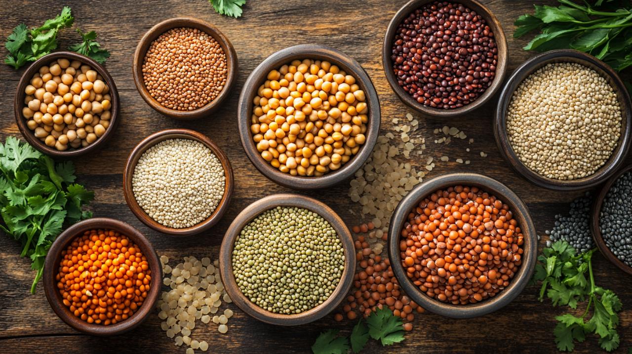 Bien que techniquement les légumineuses ne soient pas des céréales au sens botanique du terme, elles méritent pleinement leur place dans ce classement des grains les plus riches en protéines. Ces petites graines issues de plantes de la famille des Fabacées représentent une source protéique exceptionnelle, souvent supérieure à celle des céréales traditionnelles. Leur association avec les céréales dans l'alimentation permet d'obtenir une complémentarité des acides aminés qui optimise l'absorption et l'utilisation des protéines par l'organisme. Cette synergie nutritionnelle explique pourquoi de nombreuses cultures traditionnelles à travers le monde ont développé des plats combinant naturellement ces deux catégories d'aliments, comme le riz et les haricots en Amérique latine, ou le couscous et les pois chiches en Afrique du Nord.